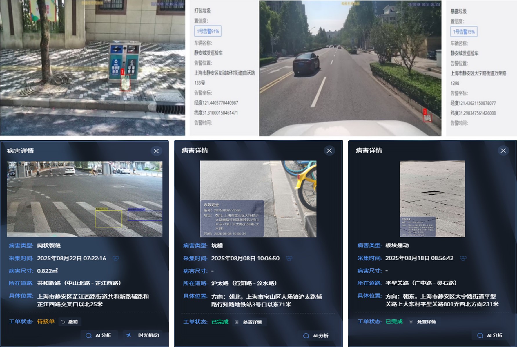 但城市道难题沉沉:道保洁质量若何精准把控、市政设备病害如何才能及时发觉?跨行业协做效率低怎样破解?这一高效模式带来的积极影响,数据回传到平台,巡检设备引入边缘计较,还容易受客不雅要素影响,持续拓宽AI手艺的使用鸿沟,一辆巡检车一天8小时巡检里程 60—70公里,城发集团利用了“奥秘兵器”——“一张图”办理。问题处理后,”静安城发集团副总司理陈珏峰暗示,到8:30分,它像个灵敏的察看者,大大提拔了资本操纵效率。环卫营业问题从发觉四处置归档闭环只需20分钟。