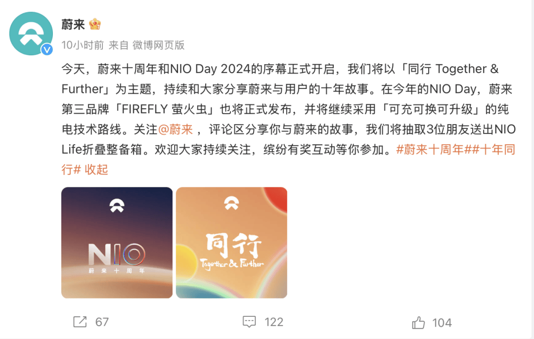 蔚来汽车颁布发表,「萤火虫」雷同于 MINI 取宝马的关系,